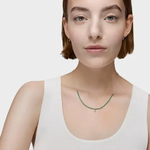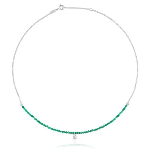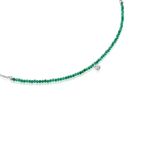 Colar TOUS Bold Bear em prata de primeira lei e calcedónia verde tratada com motivo de urso pendurado em prata. Tamanho das pedras preciosas: 2-2,5 mm. Tamanho do urso: 5,35 mm. Comprimento do colar: 42-45 cm. Fecho de mola.