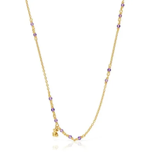 Colar TOUS Bold Bear em prata vermeil e ametista com motivo de urso pendurado em prata vermeil. Tamanho das pedras preciosas: 2-2,5 mm. Tamanho do urso: 5,35 mm. Comprimento do colar: 42-45 cm. Fecho de mola.