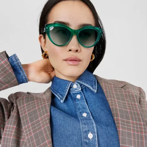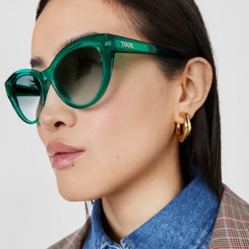 Óculos de sol TOUS Butterfly na cor verde. A frente e as hastes são de acetato. Calibre: 54 mm. Altura da lente: 43,3 mm. Largura da ponte: 18 mm. Comprimento da haste: 135 mm. Filtro: Categoria 3. As lentes são aptas para graduação. Lentes com degradê verde. Inclui um estojo ideal para guardar e proteger os teus óculos TOUS.
