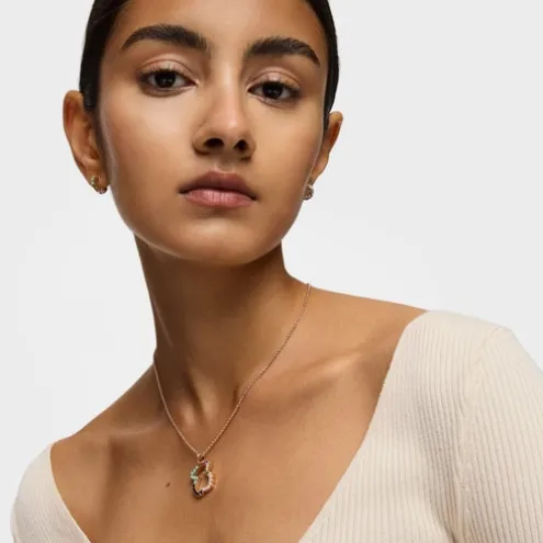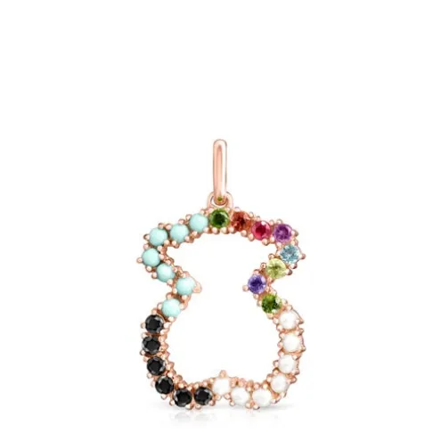 Pingente TOUS Straight urso em prata vermeil rosa com pérolas, turquesas, espinélios, tsavorite, safira laranja, rubi, ametista, topázio azul, iolita e peridoto. Tamanho do urso: 2 cm. O Vermeil é um revestimento em ouro de 18 quilates sobre prata esterlina com uma espessura mínima de 2,5 micras, sem nenhum outro material entre si. Este artigo não inclui a corrente.