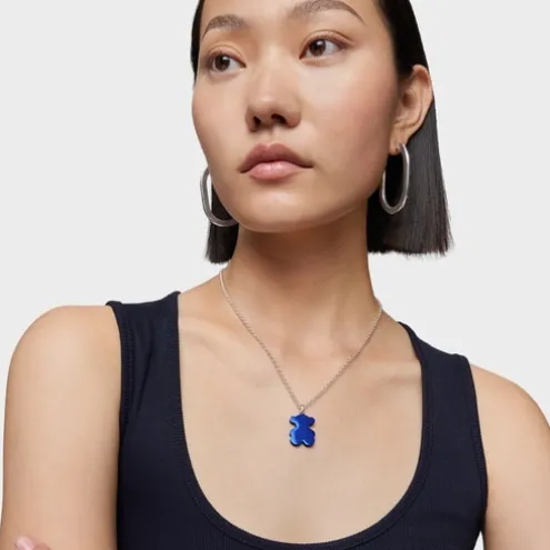 Pingente urso médio TOUS Sweet Dolls em aço com acabamento na cor azul e anilha em prata 1ª lei. Tamanho do urso: 22 mm. Este artigo não inclui a corrente.