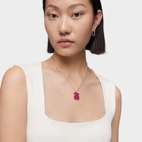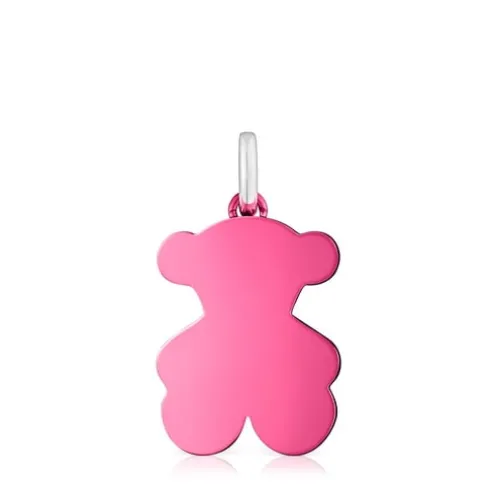 Pingente urso médio TOUS Sweet Dolls em aço com acabamento na cor rosa e anilha em prata 1ª lei. Tamanho do urso: 22 mm. Este artigo não inclui a corrente.